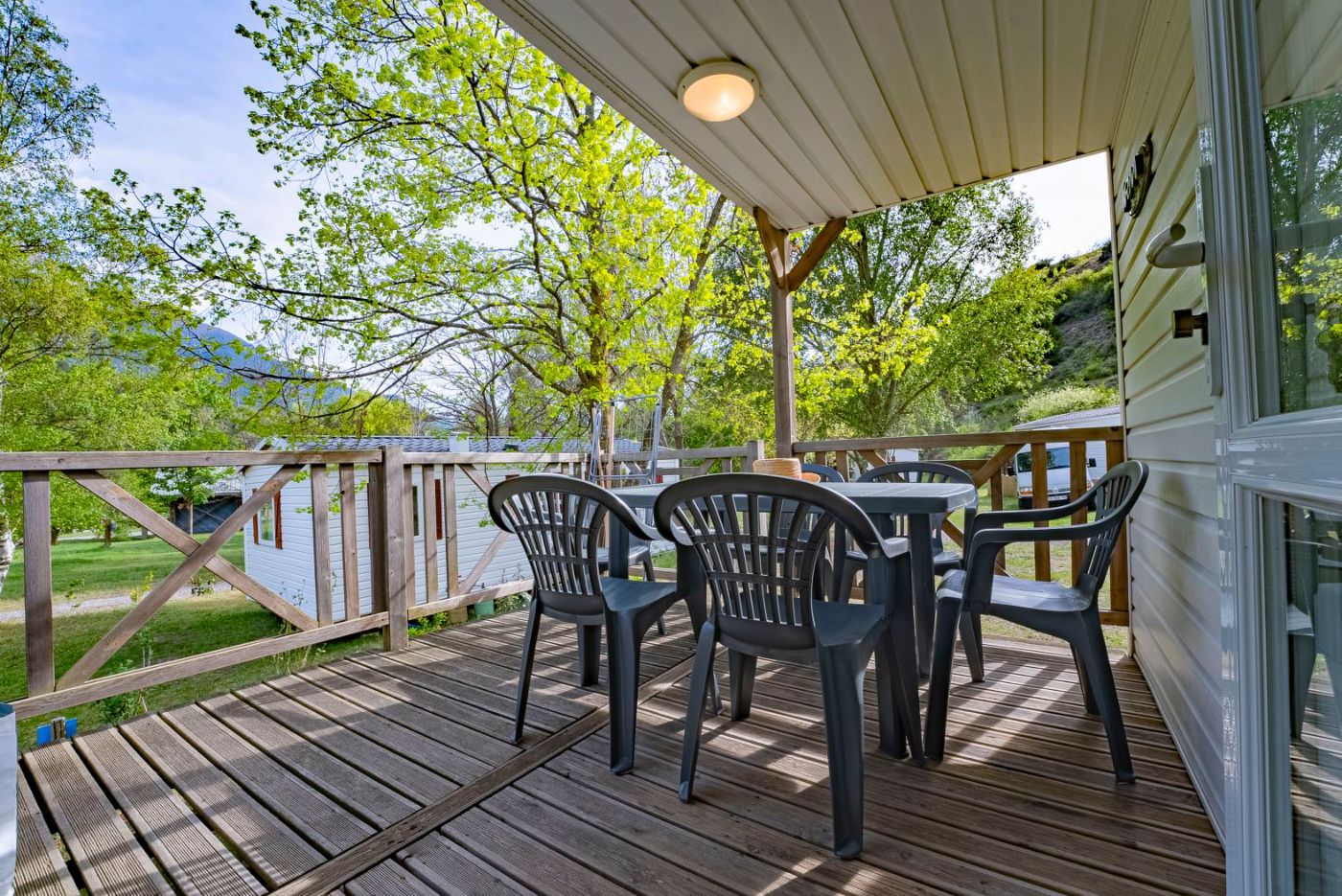 Proche du Lac de Serre-Ponçon et du Parc National des Écrins, au bord de la rivière « Durance » à Châteauroux les Alpes, un camping nature et familial équipé de Mobile-homes, Bungalows, d’une piscine chauffée et d’un snack.