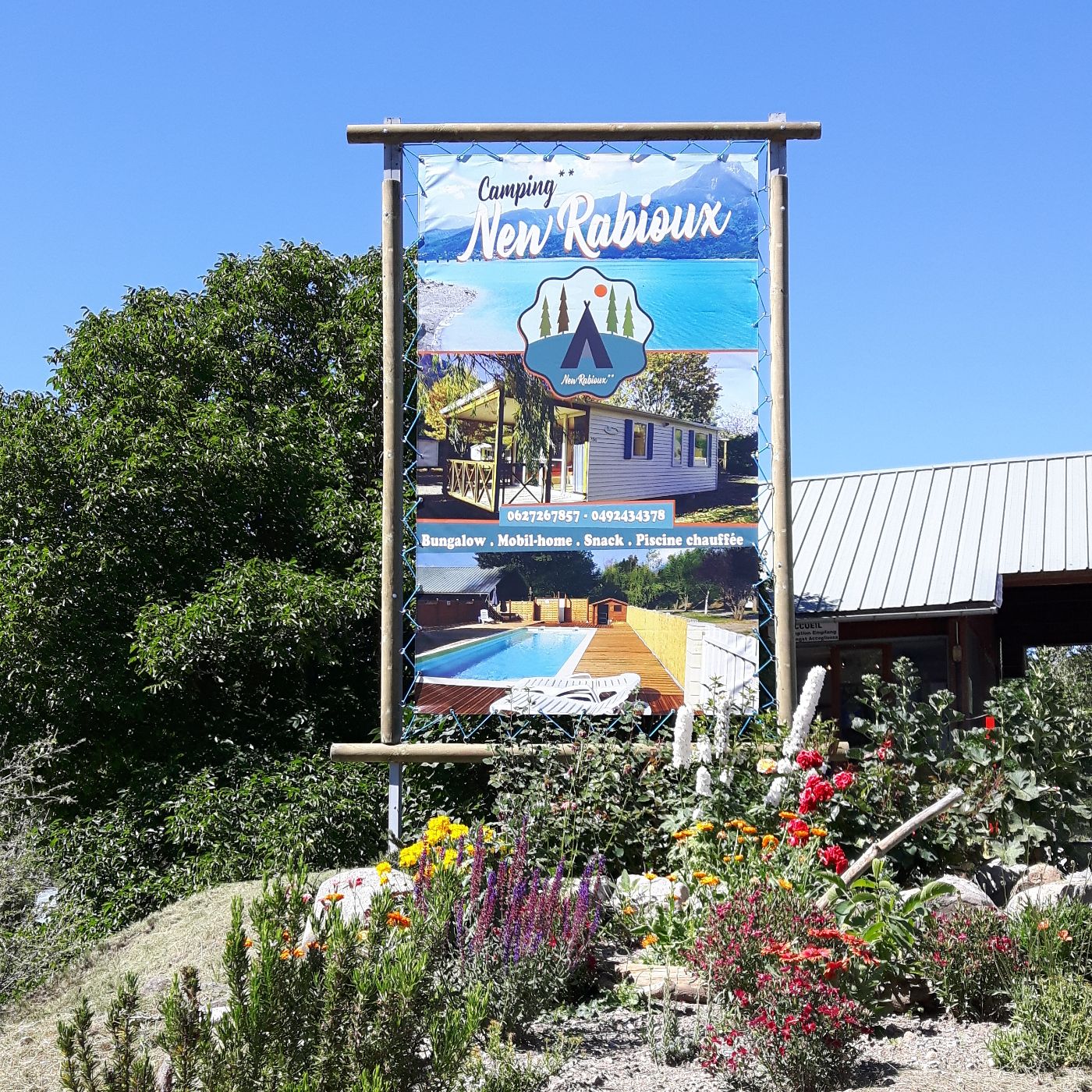 Dans les Alpes du sud, en pleine nature, à Châteauroux les Alpes, commune du Parc national des Ecrins, le Camping New Rabioux*** est situé en bordure de la célèbre vague du Rabioux.